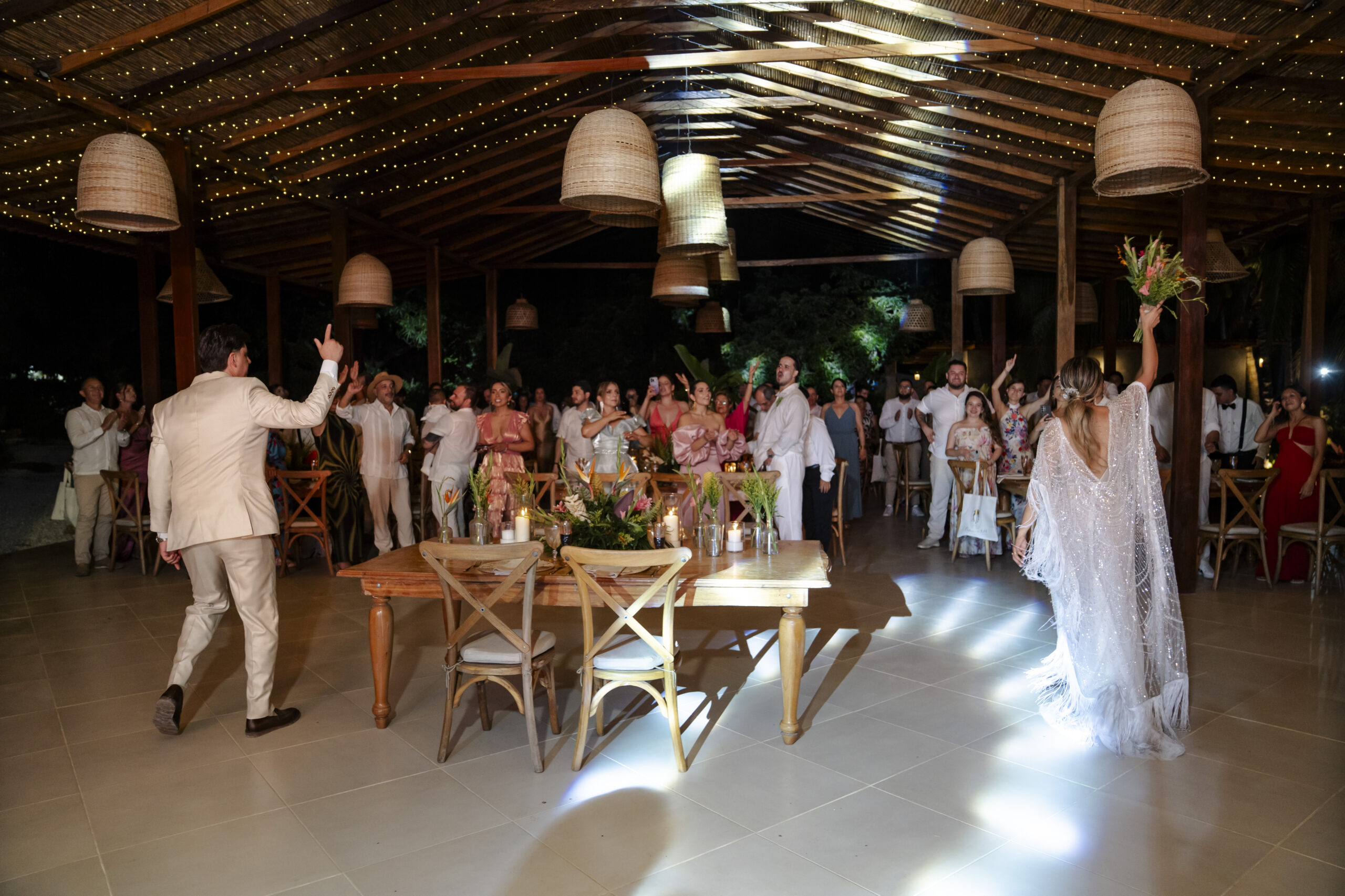 Sus columnas abiertas y el techo de madera de alta calidad brindan una sensación de amplitud, al tiempo que permiten que la brisa del mar y la luz natural fluyan libremente. Decorada con luces suaves y detalles florales, la pérgola se transforma en un lugar único para disfrutar de una fiesta exclusiva, mientras la vista de la playa y el mar te acompaña durante toda la celebración.